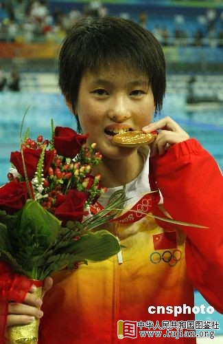 8月21日,中国选手陈若琳获得北京奥运会女子10米台跳水冠军。 中新社发 杜洋 摄