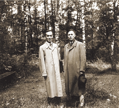 1936年,季羡林(左)与同学在德国。新华社发
