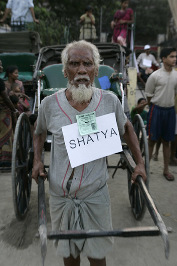 2009年4月19日,印度人力车手比赛在加尔各答举行,大约100名人力车夫参加了比赛。