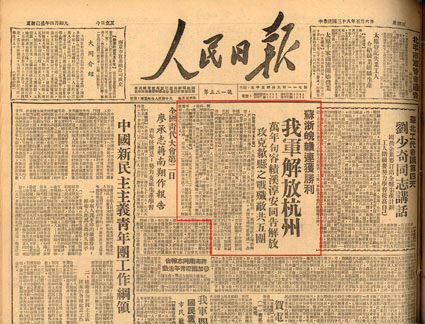 6.1949年5月6日,《人民日报》关于人民解放军解放杭州的报道