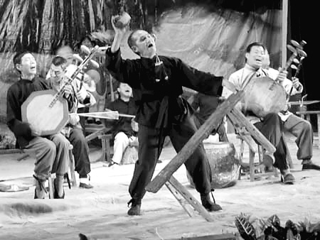 悠久的漕运历史,造就了传唱千年的老腔。西汉年间,在渭、洛、黄河交汇的三河口处,有一座西通长安的水陆码头,千帆竞进、船工众多。因为逆水行舟,免不了需要光膀赤脚的纤夫拉纤曳船。船工拉船时,总是一人起头喊号子,众人便跟着一起喊,一齐用力。有人用一块木头有节奏地打击船板,这样,号子就更具有号召力和合力。于是,航道上的船工号子就会此起彼伏,响彻河道两岸。岁月流逝,两千年过去了,三河口处的船工号子也发展变化着,一人起头喊号子成了一人主唱,众人跟着一起喊成了众人帮腔满台吼,木块击板则成了乐器。于是,黄河岸边就有了一独特的戏种——老腔。这号子、还有船工用篙击打船板的声响,统统融入到老腔的表演当中,形成了老腔独有的“拉坡调”,老腔表演当中的拍打惊木就是从船工用篙击打船板演变而来的。虽然老腔是由西汉时期的船工号子,在吸取了当地民间艺术的基础上,逐渐演化而来的,然而,我还是固执地认为,即便是船工号子,也只有落在这片黄土地上,才会这么风生水起,才会这么不可一世,才会这么激荡人心。