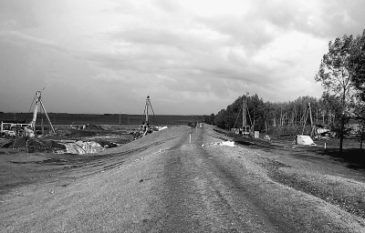 在施工现场的一块蓝色牌子上,标明此处工程是“绥满国道阿博高速公路ABLJ—01合同段”。据一位工程指挥人员介绍说,此处在建的是一座跨越金代长城遗址的立交桥,同时该桥也是一座跨省界的大桥。当施工人员被问及“是否知道施工地是文物保护单位”时,均是一脸茫然。 tujian.org