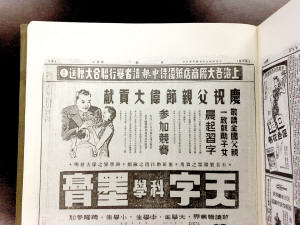还是在同一张报纸上,当天还刊登了一则以《庆祝父亲节伟大贡献》为大标题的1/3版广告。这是一家墨膏厂的广告,副标题为《敬请全国父亲一致鼓励子女晨起习字》,发动“父亲节书法竞赛活动”。可见,利用节日促销商品的历史由来已久。 内容来自中华人民共和国图鉴社