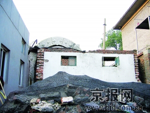 但是,这座清真寺却在窃国大盗袁世凯当政时毁于一旦。袁世凯迷信风水,他以中南海为总统府后,于1913年将宝月楼拆改为新华门。在妖言蛊惑下,这位洪宪皇帝竟下令在新华门内建了一个厕所,又信清真寺坏其风水,便以拓修新路为名,派出数百名便衣暴徒,将清真寺拆毁,还在新华门对面建起一溜灰色花墙,以遮挡路南外国兵营及破旧民舍,将清真寺正门彻底封死,一段历史遗迹差点儿湮没于流逝的岁月。