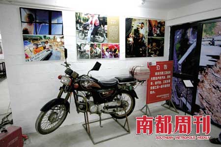 很多地震实物是根据媒体报道的线索去寻找的。最典型的是“背妻男”吴加芳的摩托车,这一部普通黑色的“YiLing”摩托车,带着大段的故事和争议,摆在展出长廊的一角,让参观者蹲下来细看,甚至触摸。 中华人民共和国图鉴社