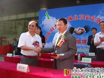 人民网海南视窗3月24日讯(隋繁摄影报道): 2009年3月22日上午,海南省安宁医院隆重举行首都医科大学附属北京安定医院指导医院签约暨揭牌仪式。 参加签约暨揭牌仪式的有海南省卫生厅党组书记、厅长白志勤、副厅长隋枝叶、海南省卫生厅党组成员、海南省人民医院党委书记吕传柱、首都医科大学附属北京安定医院党委书记任玉良、副院长郑毅教授、海南省卫生厅各处室的领导和新闻记者等共200多人。签约暨揭牌仪式由海南省安宁医院副院长许开宁主持。 中华人民共和国图鉴社