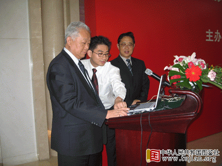 图为全国人大常委会副委员长兼秘书长盛华仁开通中国国土资源法律网。 中华人民共和国图鉴社
