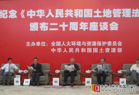 6月23日,全国人大环境与资源保护委员会、国土资源部在人民大会堂召开座谈会,纪念《土地管理法》颁布实施二十周年。图为座谈会现场。 中华人民共和国图鉴社