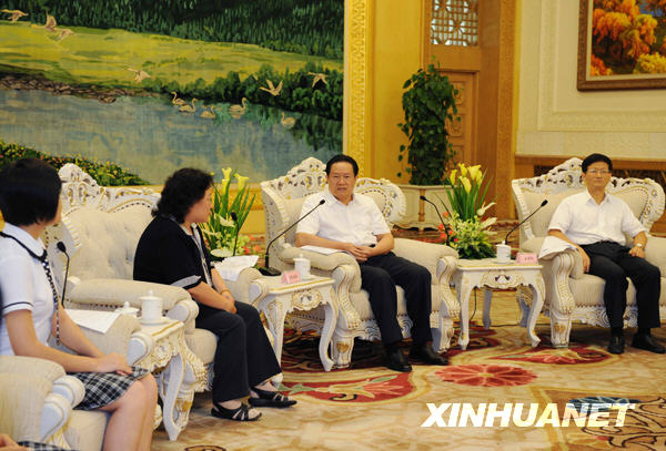 8月21日,中共中央政治局常委、中央政法委书记周永康在北京人民大会堂与公安英烈家属代表座谈。新华社记者 饶爱民 摄 内容来自中华人民共和国图鉴社