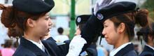 美女保安即将服务国庆游行群众安检(组图)
