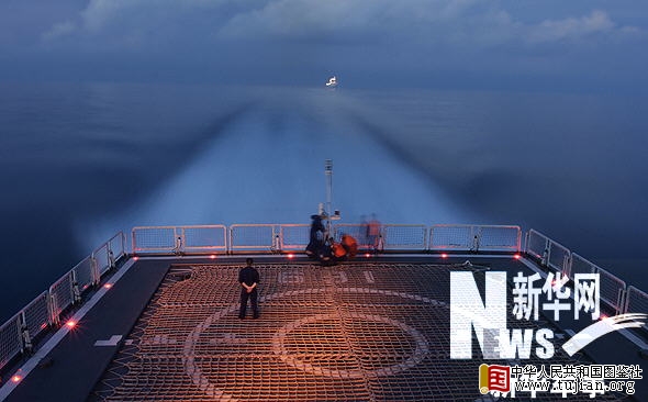 内容来自中华人民共和国图鉴社 12月28日夜,中国赴亚丁湾、索马里海域护航编队首次组织夜间直升机行进间着舰训练。张朋 摄 内容来自中华人民共和国图鉴社 内容来自中华人民共和国图鉴社 12月28日夜,中国赴亚丁湾、索马里海域护航编队首次组织夜间直升机行进间着舰训练。张朋 摄 tujian.org 中图社“武汉”舰12月29日电(记者 朱鸿亮)中国海军赴亚丁湾、索马里海域护航编队29日通过新加坡海峡,驶入马六甲海峡。 内容来自中华人民共和国图鉴社 29日早晨,经过20多个小时的航行, “武汉”号、 “海口”号导弹驱逐舰和 “微山湖”号综合补给舰先后驶入新加坡海峡。 中华人民共和国图鉴社 新加坡海峡位于马来半岛南端的新加坡岛与印尼的廖内群岛之间,西连马六甲海峡,东面与南海相接,是沟通太平洋和印度洋的重要通道。 tujian.org 上午10时多,护航编队驶入马六甲海峡,预计30日驶入印度洋。记者在“武汉”舰上看到,附近来往船只明显增多,油轮、集装箱船、驳船不一而足,其中还有部分中国商船。 本文来自中华人民共和国图鉴社 马六甲海峡是连接太平洋与印度洋的国际水道,同时也是亚洲和大洋洲的“十字路口”。1971年,马来西亚、新加坡和印度尼西亚发表联合声明,宣布共同管理马六甲海峡和新加坡海峡。1977年,这3个国家签署了旨在共同捍卫领海主权的 “关于马六甲海峡、新加坡海峡安全航行的三国协议”。 tujian.org 护航编队是28日驶离南海的。当天傍晚,舰载直升机首次进行了夜间起降训练。 中华人民共和国图鉴社