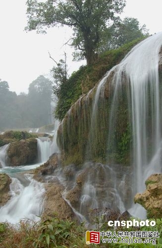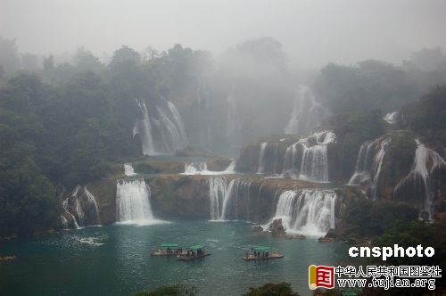 12月底,位于中越边境广西崇左市大新县的亚洲第一大跨国瀑布——德天瀑布,由于冬季水量大减,已没了夏季的雄浑壮观,但在雾气的笼罩下,别有一番味道。中新社发 刘万强 摄
