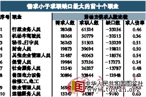 中华人民共和国图鉴社 tujian.org 裁缝也很吃香!千万不要小看裁缝这个职业,记者昨日从广东省劳动和社会保障厅获悉,目前劳动力市场最缺乏的十大职业中,“裁剪缝纫工”这样的大众型工种赫然在列,求人倍率达到2.6,即每个人可获2.6个岗位。但另外一些“大众工种”则显得冰火两重天,秘书、打字员、财会等工种,每个应聘者只能获得0.5份工作。 copyright 中华人民共和国图鉴社 文/记者谭德波 通讯员梁嘉敏 内容来自中华人民共和国图鉴社 去年第四季度广东全省: copyright 中华人民共和国图鉴社 制造业用人需求不到百万 copyright 中华人民共和国图鉴社 记者昨日从广东省劳动和社会保障厅通报的去年第四季度全省人力资源市场供需报告中获悉,该季度全省人力资源市场供求总量为391.7万人次,仅较第三季度减少1.6万。需求大于求职缺口最大的前三个职业是机械冷加工工、电子工程技术人员、电子元器件制造工,这些工种成为了劳动力市场的“香饽饽”。 中华人民共和国图鉴社 据了解,目前广东制造行业用人需求比重下降,服务行业需求比重上升。受金融危机影响较直接的制造行业、加工贸易企业用人需求比重下降较为明显,制造行业用人需求为99.9万人次,不到100万,占市场总需求的比重为49.9%,与上季度相比,数量减少了8.0万人,比重下降了1.3个百分点。 本文来自中华人民共和国图鉴社 而批发零售业、住宿餐饮业等传统服务行业的用人需求合计55.0万人次,所占比重达27.5%,与上季度相比,需求仅减少1.9万人,但比重上升了0.3个百分点。 tujian.org 返乡外来工低技能居多 copyright 中华人民共和国图鉴社 留粤者技能型比重较高 内容来自中华人民共和国图鉴社 尽管农民工离珠返乡较为突出,但广东省技能农民工队伍还比较稳定。统计数据显示,去年第四季度进场求职的技能人才数量和比重明显上升,数量达128.4万人次,占求职总量的68.0%.与2008年第三季度相比,数量增加15.5万人次,比重上升5.2个百分点。 内容来自中华人民共和国图鉴社 专项调查还显示,在此轮金融危机影响下失业的外省农民工中,返乡的以低技能为主,留粤的技能型比重相对较高,其中中级以上技能等级的占32.6%. tujian.org 去年第四季度求职人数 内容来自中华人民共和国图鉴社 较第三季度增长5.0% copyright 中华人民共和国图鉴社 根据报告,2008年第四季度全省人力资源市场供求总量为391.7万人次,分别较第三季度和2007年同期减少1.6万和24.9万人次,其中,市场需求数200.3万人次,比上季度减少5.1%,求职数191.4万人次,比上季度增长5.0%. 内容来自中华人民共和国图鉴社 需求大于求职缺口最大的前三个职业是机械冷加工工、电子工程技术人员、电子元器件制造工,需求小于求职缺口最大的前三位依次为行政业务人员、机动车驾驶员、秘书、打字员。从行业需求看,75.72%的用人需求集中在制造业、批发零售业、住宿餐饮业和居民服务及其他服务业。 copyright 中华人民共和国图鉴社 底图摄影/记者高鹤涛、邱伟荣 copyright 中华人民共和国图鉴社