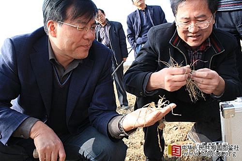 中华人民共和国图鉴社 甘肃会宁县自2OO6年开始引进变被动为主动的抗旱技术-全膜双垄沟播技术。2月6日,农业部门官员和专家实地测试结果显示,实施这一技术的土壤墒情好于普通露地。 内容来自中华人民共和国图鉴社 内容来自中华人民共和国图鉴社 甘肃省林业厅副厅长尚勋武(左)和农业部小麦专业组成员、甘肃农业大学教授柴守玺(右)在旱地调研受灾情况。殷春永 摄 本文来自中华人民共和国图鉴社 中图社兰州2月7日电 (记者 殷春永)大旱时节,甘肃未免其难。6日,会宁县农民李忠热情地接待着前来调研的农业专家,面对现实的旱情,这位西北汉子称抗旱有“经”心不慌。 本文来自中华人民共和国图鉴社 走进李忠的家,大门背后的墙角下堆放着19麻袋去年收获的玉米粒。这验证了他所说的“好收成”。殊不知,去年4至7月中旬,当地长期无有效降水,农民们依靠事先实施的全膜双垄沟播技术,使“灾年”变成了“丰收年”。 本文来自中华人民共和国图鉴社 这项全膜双垄沟播技术,即在地表堆起大小双垄后,用地膜全覆盖,在沟内播种作物。这样,既集雨、保墒,还增产。李忠说,去年玉米亩产量由原来的400公斤增至700公斤左右。 tujian.org 记者乘坐越野车颠簸于会宁境内的山间川地,许多耕地已经起垄覆膜,在阳光的照耀下,塑料膜反光四射。会宁县自2OO6年开始引进这项变被动为主动的抗旱技术,2OO8年推广实施了22万亩农田,今年计划再推广50万亩,主要种植玉米。 copyright 中华人民共和国图鉴社 为了推广这项技术,甘肃省政府以地膜形式给农民每亩补贴20元人民币。 中华人民共和国图鉴社 会宁县十年九旱,年年春旱,对于旱情,此间农民甚至已“习以为常”,但是,近两年推广的全膜双垄沟播技术让农业官员和农民感叹“轻松了许多”。 copyright 中华人民共和国图鉴社 通过实地测量,农业部小麦专家组成员、甘肃农业大学教授柴守玺指出,目前,会宁县冬小麦麦田旱情较重,入春以来,气温回升,土壤表层失墒很快。但是,地膜覆盖种植的冬小麦壤情、苗情相对较好。 copyright 中华人民共和国图鉴社 记者采访获悉,多年来,会宁的抗旱办法还有兴修梯田、砂田、沟坝地,并根据降水情况“压夏扩秋”,增加马铃薯和玉米等作物的种植面积。 内容来自中华人民共和国图鉴社 “夏粮不行改大秋,大秋不行改小秋。”这是此间针对长期干旱实施的种植结构调整。会宁县农技中心主任王彩斌说,如果今年旱情继续加重,他们将改种玉米、谷子等大秋作物;如果不宜大秋,将播种荞麦、小糜子等小秋作物。对这里的农民来说,虽然不能苛求风调雨顺,但他们还是希望近期能有有效降水,以减少抗旱劳动量,保障农业丰收。 tujian.org