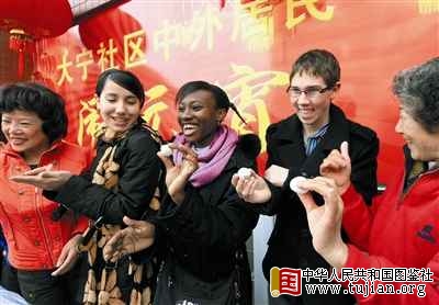 当日,上海市大宁路街道的居民和社区内的各国留学生以猜灯谜、包元宵的方式,共同迎接即将到来的元宵佳节,感受浓郁的中国传统文化。中图社记者 陈飞 摄 中华人民共和国图鉴社