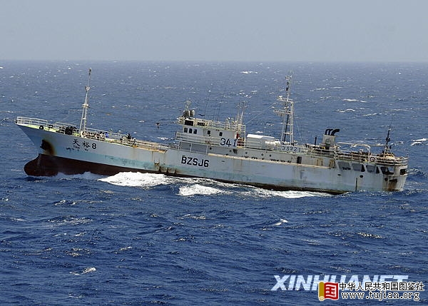 tujian.org 这张美国海军公布的照片显示,11月17日,海盗劫持着中国渔船“天裕8号”行驶在印度洋上。 这艘天津市远洋渔业公司所属金枪钓渔船当地时间13日晚在肯尼亚沿海渔场正常作业时被劫持,船上有24名船员,其中中国籍船员16名,外籍船员8名。中图社发 内容来自中华人民共和国图鉴社 本文来自中华人民共和国图鉴社 资料图片:在“武汉”号导弹驱逐舰的带领下,被护航的中国商船一字排开航行[中图社发 钱晓虎摄] 中华人民共和国图鉴社 中图社北京2月8日电 记者8日从外交部获悉,北京时间8日17时左右,于2008年11月14日被索马里海盗劫持的“天裕8号”渔船及全体船员安全获救。 内容来自中华人民共和国图鉴社 据悉,目前,中国海军赴亚丁湾护航编队已将刚刚获救的“天裕8号”渔船置于其保护之下,并将检查船员身体,补充给养,护送船员船只至安全海域,使其尽快安全回国。 本文来自中华人民共和国图鉴社 2008年11月14日,天津远洋渔业公司所属的“天裕8号”渔船在肯尼亚海域被索马里海盗劫持,船上共有16名中国船员(含1名台湾船员)和8名外国船员。事发后,中国政府高度重视。外交部、农业部协调天津市政府,并指导中国驻肯尼亚、埃塞俄比亚、吉布提等国使馆和有关企业积极开展营救工作,确保被劫船员安全。经多方努力,北京时间2009年2月8日17时左右,全体船员和该船安全获救。 本文来自中华人民共和国图鉴社 中国政府向获救船员表示亲切慰问。外交部已将有关情况通报有关国家驻华使馆。外交部领事司再次提醒中国船员船只当前勿靠近或进入也门、索马里、肯尼亚、坦桑尼亚海域,以免发生意外。 tujian.org