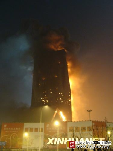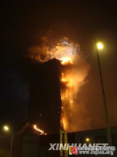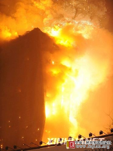 2月9日晚21时许,北京市京广桥附近的央视新大楼北配楼发生火灾。中图社发