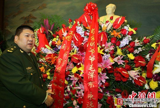 12月26日上午,毛泽东的孙子、解放军军事科学院少将毛新宇与夫人刘滨、儿子毛东东、女儿毛甜懿到位于北京天安门广场中的毛主席纪念堂敬献鲜花,纪念毛泽东诞辰117周年。