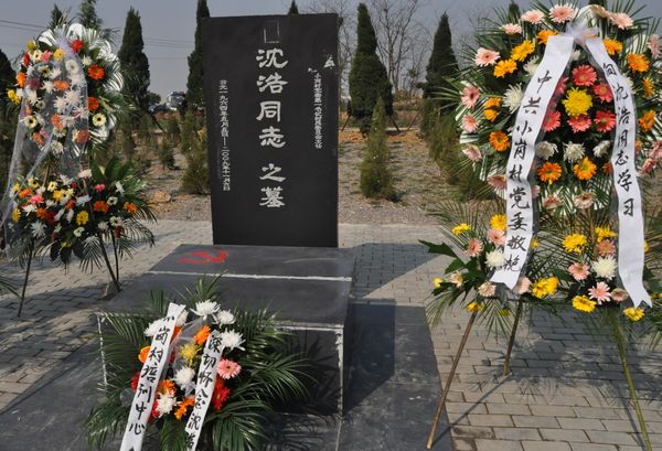 小岗村党委第一书记丁俊同志[TongZhi]向沈浩墓敬献花篮 内容来自dedecms