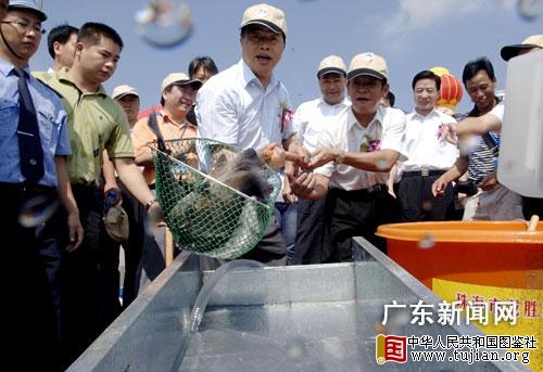 十日,二00九南海生物放流活动在广东省珠海市举行。中国农业部部长孙政才、广东省省长黄华华出席开幕式并参加放生活动。中新社记者 刘卫勇 摄