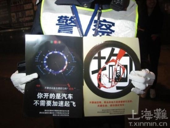 活动开始时,新民[XinMin]网记者跟随静安交警来到同乐坊,静安交警向过往行人发放酒后[JiuHou]不驾车[JiaChe]的宣传单。设计凡客体海报的静安交警车宣科科长周翔告诉新民[XinMin]网记者,此次他特地设计了几款宣传单,并在宣传单后面印上了新版《中华人民共和国道路交通安全法》的规定。新民[XinMin]网记者看到,宣传单上印有“不要迷恋哥,哥去的地方时要警察引见的。关爱生命,请勿酒后[JiuHou]驾车[JiaChe]。”等新颖语言劝驾驶员酒后[JiuHou]不驾车[JiaChe]。