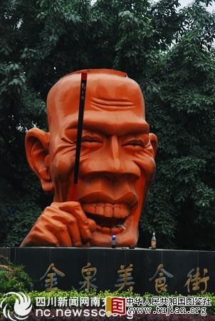 手中紧握竹筷、神笑容可掬“食神”雕塑是南充市金泉路美食街的标志。但雕像自建立开始,手中的筷子就多次神秘失踪。为保护好这个代表着南充美食行业的良好形象,美食街一商家的花费近千元,专门请来工匠制成一双上方下圆的传统餐筷,该餐筷长2.65米,上端边长0.15米,下端直径为0.1米,整个筷身上黑下红,用防水材料和上等漆美化外观。但令人想不到的是,当这双筷子安装仅仅不到一个月的时间再次神秘失踪一根,商家也对此感到无可奈何告诉记者说:“不知道“食神”何时才能在进餐的时候有自己的筷子用啊?”