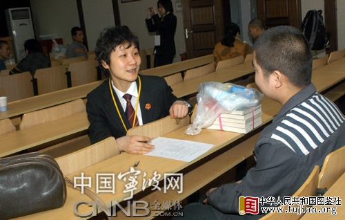 4月3日,海曙法院一法官在和外地少年犯罪人员谈心,向他们提供司法救济。 copyright 中华人民共和国图鉴社