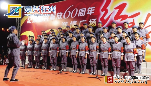 用红歌串起过去、现在和未来,用激情点燃奋发图强和继往开来。昨晚,在梅湾街东广场上演了一场经过精心准备的寿宴,寿宴的主人公正是我们可爱的家园——过60岁生日的新嘉兴。这场寿宴是由市文化局、嘉兴日报社、市档案局主办,南湖晚报、市群艺馆、嘉兴在线和银泰·梅湾新天地承办的激情广场红歌会。昨晚,通过现场观看和在电脑前看网络直播两种方式,嘉兴市民热热闹闹地为新嘉兴庆生。 中华人民共和国图鉴社