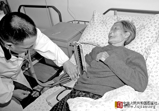 一切安顿妥当,陈新民立即为老人量血压、测心跳、听心音。结果表明,老人血压偏高。如果不及时治疗,甚至会危及生命。住院期间,医院将对老人作全面、系统的检查,并详细地制订治疗方案。 中华人民共和国图鉴社