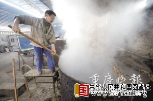 12月11日,渝北嘉兴废油厂,一工人正用潲水炼油。首席记者史宗伟实习生叶林摄