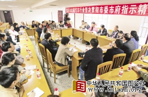 昨日,36家出租汽车企业以及私车组负责人聚在一起,对下调“份儿钱”进行表态 记者李文彬摄