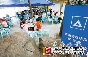 江北花卉园内的紧急避难场所成了茶馆(资料图片)