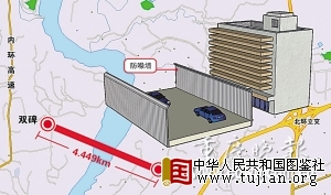 双碑大桥架设在嘉陵江上,西起沙区双碑杨双路,东至江北石马河,通过一座立交桥和内环高速公路连接。双碑附近还将修建一座隧道穿越中梁山,和大学城相连。这些工程竣工后,从大学城到江北,只需15分钟左右。大桥总长度4.449公里,比菜园坝大桥短300米左右。
