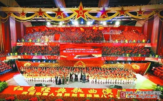 7月30日晚上,江南体育中心军旗飘扬,红歌嘹亮,由市委、市政府、成都军区、重庆警备区共同主办的庆祝中国人民解放军建军82周年红色经典歌曲演唱会在这里隆重举行。
