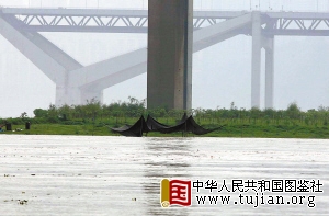 随着长江水位不断升高,远处的珊瑚坝只留下一小块。