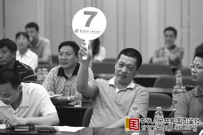 昨日,农村土地交易所,7号买家举牌竞买地票 记者 欧阳祖兵 摄