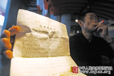 昨日,渝北,陈军出示自己拿到的判决书 记者 欧阳祖兵 摄