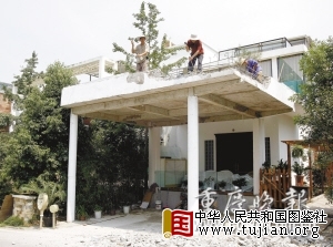面积约为30平方米的露台,下面用四根水泥柱支撑。3个工人抡起大锤,不断地敲击水泥柱,挥汗如雨。“划不着,修露台差不多花了近万元,现在拆除也要花同样多的钱。”业主表示很后悔。