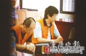 曾经的派出所副所长覃某(右)在接受审判 记者 杨帆 摄