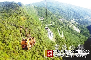 运行多年的北坡索道已十分险峻,本月底开通的世界第一陡的西坡索道将更加惊险(资料图片)。记者 贺怀湘 摄