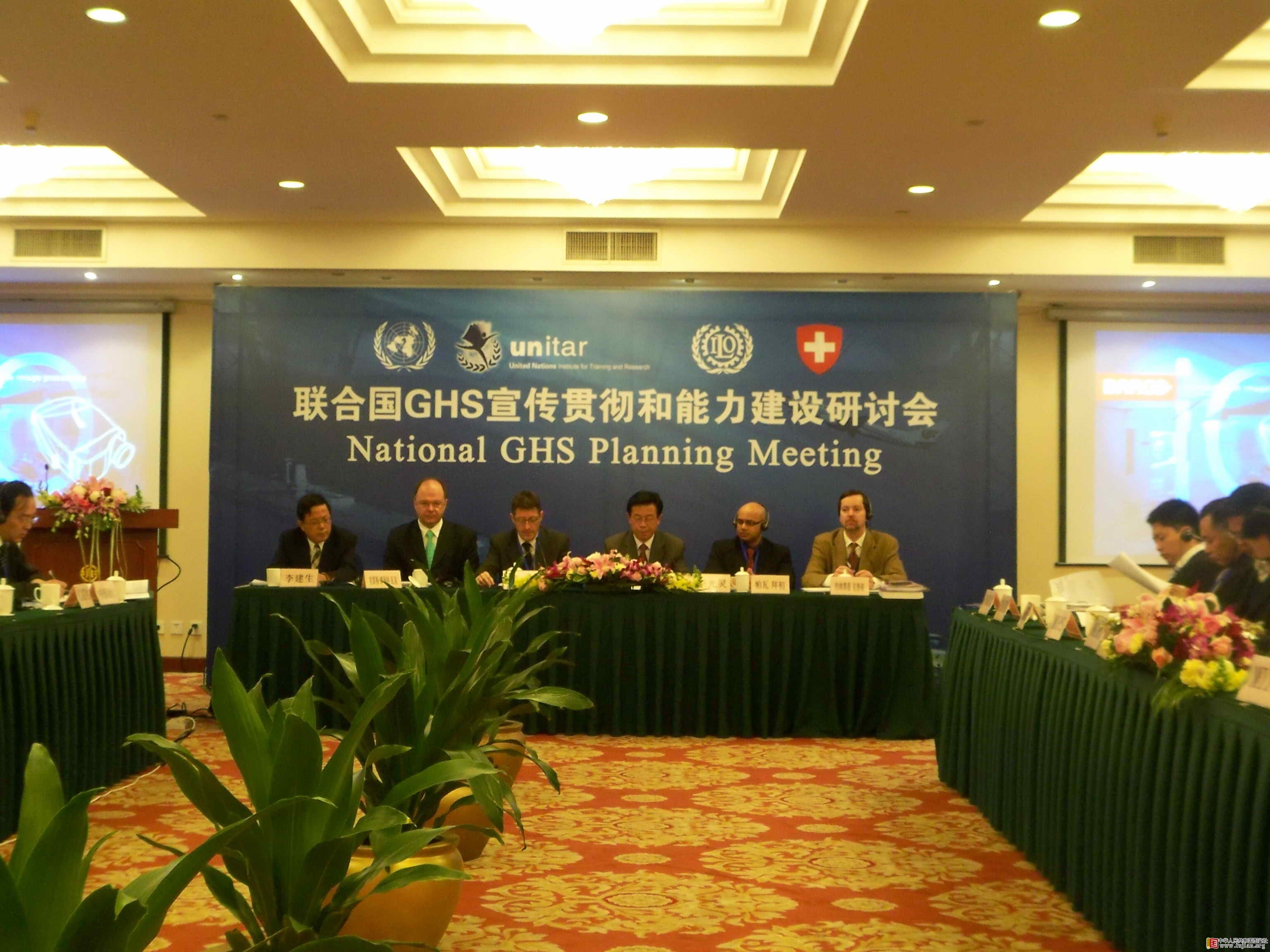 11月28日, GHS(Globally Harmonized System of Classification and Labelling of Chemicals 简称GHS,即全球化学品统一分类和标签制度)宣传贯彻和能力建设研讨会在北京召开。本次研讨会由联合国训练研究所 (UNITAR)和国际劳工组织(ILO)和中国交通运输部联合举办,并得到瑞士王国政府的赞助。国家安检总局、国家环保部、国家质检总局等各有关部委、协会和企事业单位的代表参加了本次研讨会并积极献言献策。