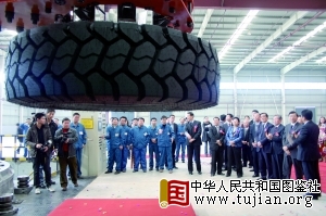 上图为巨型工程胎下线的场景。 (特约记者 虞仲义 摄)