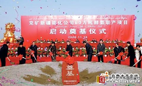 奠基仪式 昨日(11月18日),总投资40.97亿元的兖矿新疆能化公司60万吨醇氨联产项目在甘泉堡工业区奠基。项目建设期为32个月,建成后将填补新疆没有以煤为原料生产合成氨、尿素、甲醇大型企业的空白。 中华人民共和国图鉴社