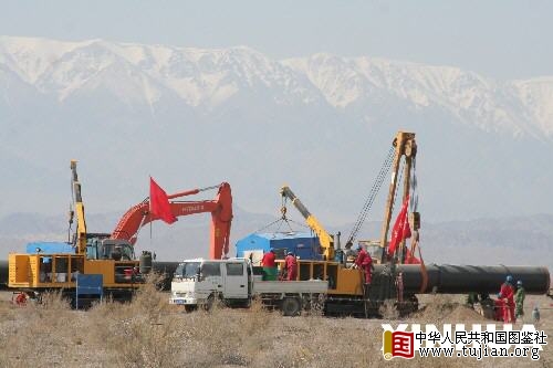 我国第一条引进境外天然气的大型管道工程——西气东输二线工程在广大施工人员的努力下进展顺利。目前,进入国内的首个施工段——新疆伊犁段管道埋设工程已突破100公里。 copyright 中华人民共和国图鉴社