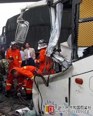 5月24日,在芜(芜湖)宣(宣城)高速公路车祸事故现场,消防官兵正在救援。当日凌晨,芜湖至宣城高速公路发生连环车祸。据初步统计,该连环车祸目前已经造成11人死亡,28人受伤。新华社发 tujian.org
