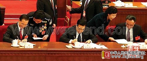 胡锦涛主席给少数民族代表签名 供图/刘晓斌 copyright 中华人民共和国图鉴社
