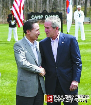 美国东部时间19日,韩国总统李明博与美国总统布什商定,在普遍价值与坚固的信任基础之上,将两国关系提升至“21世纪战略同盟关系”。 tujian.org