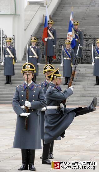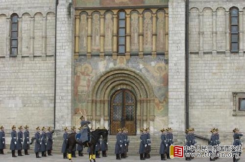 2008年4月20日,俄罗斯莫斯科,克里姆林宫步兵及骑兵卫队盛装换岗。 本文来自中华人民共和国图鉴社