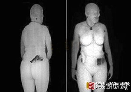 在透视图中除手枪等金属对象外,扫描者的身材亦表露无遗。 copyright 中华人民共和国图鉴社