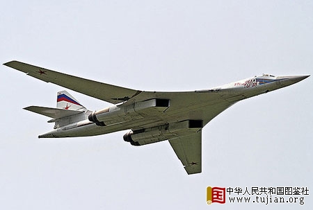 图-160远程战略轰炸机是世界上最大的军用飞机之一,起飞重量275吨,飞行高度1.6万米,航程可达1.3万公里,配备4名机组人员。这种飞机可携带12枚带有核弹头的导弹或装载40吨常规炸弹,用于对敌人后方纵深的重要目标进行核打击或常规打击。 中华人民共和国图鉴社